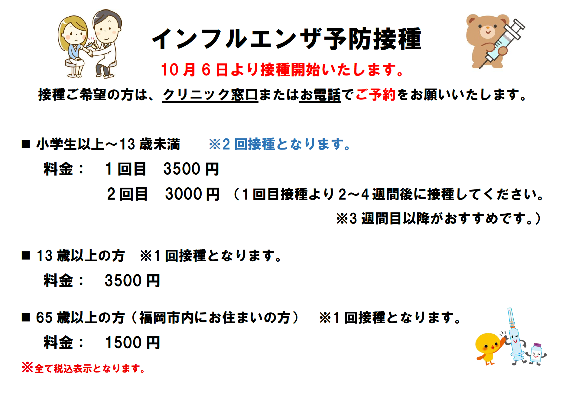 9月24日(水)〜インフルエンザワクチンの予約を開始いたしました。